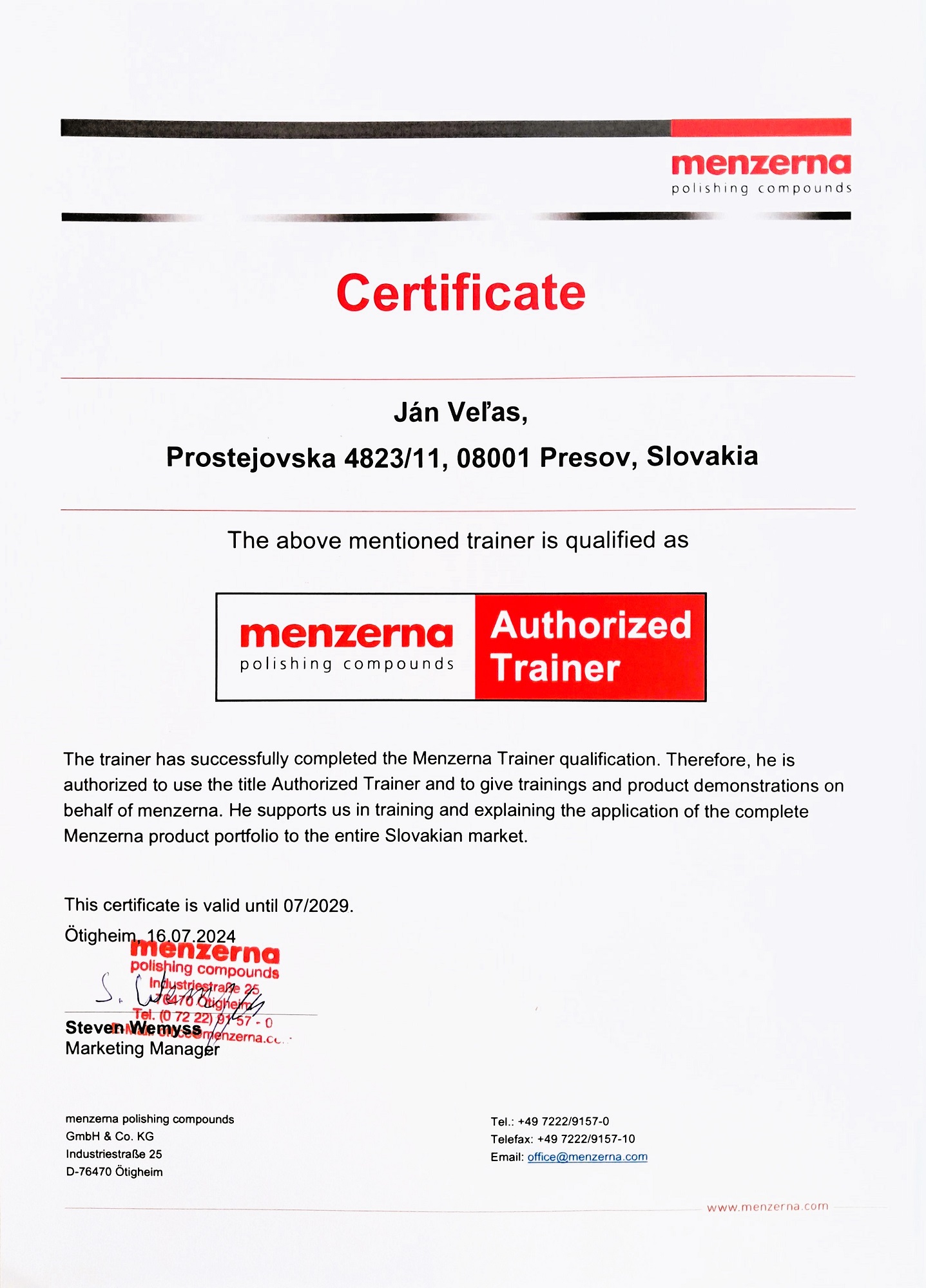 Je mi cťou, že najväčšia spoločnosť na výrobu leštiacich produktov na svete Menzerna, ma nominovala za ich autorizovaného školiteľa pre Slovenskú Republiku. Ďakujem im za dôveru a spravím maximum, aby som svoje poznatky, ktoré som získal počas 20 ročnej praxe a počas Menzerna školenia, ktoré som absolvoval, odovzdal ďalším ľuďom na mojich školeniach. Každý, kto sa zúčastní prezentácie produktov Menzerna alebo celodenného školenia na leštenie a ochranu lakov, získa medzinárodný certifikát v anglickom jazyku aj od tejto spoločnosti. ![]() Ján Veľas | 19.7.2024 Menzerna dni na Slovensku v troch mestách, Prešov, Žilina a Bratislava bola super akcia a prezentácia ich produktov nemeckými kolegami priamo z Menzerny. Celú akciu organizovala a sponzorovala firma z Prešova, Renojava s.r.o., ktorá je distribútorom a zastúpením Menzerny na Slovensku. Veľká vďaka. Program začal prezentáciou, školením, potom sme mali krátke občerstvenie, kávu a presun do lakovne v Prešove, kde páni z Menzerny prezentovali viaceré produkty firmy Menzerna, ale hlavne novú pastu Cut pro force a ich nové leštiace pady. Leštičky boli značky Flex, viacero druhov baterkových nových mašín. Tréning a testovanie sa robilo na kapote auta jedného z kolegov a na pripravených kapotách na stojanoch. Celkovo sa akcie zúčastnilo asi 20 ľudí, či už ľudia z predajní, lakovní, myčiek alebo ako ja, tí ktorí sa zaoberajú renováciou lakov. Nakoniec náš čakal fantastický guľáš a buchtičky na prevádzke v Renojave. Ďakujem za super akciu, takých by malo byť viac, kde by sa mohli ľudia stretnúť a navzájom spoznať. Aj ja som získal nové kontakty a priestor na spoluprácu, čo sa potvrdilo pár dní po akcii. Nebolo to typické školenie na leštenie lakov, ale prezentácia produktov, ale aj tak to bola výnimočná akcia na slovenské pomery. ![]() Ján Veľas | 23.4.2024 Rok 2023 bol môj cestovateľský rok a nemal som čas venovať sa tejto domovskej stránke, hoci na Facebooku som stále. V januári sme boli v Indii v Bengalúre, vo februári sme boli v Číne, v Šanghaii, Suzhou, Jingzou a dokonca vo Wuhane a v apríli zase vo Francúzsku v Lyone. Boli sme tam pracovne na služobných cestách preberať výrobné linky a výrobné stanice pre nový automotive projekt. 2 roky som totiž pracoval pre Valeo Prešov pri nábehu nového projektu vysokonapäťového ohrievača chladiacej kvapaliny pre elektrické autá. Je to opak chladiča, vytvára teplo za pomoci batérie a tým sa vykuruje priestor v kabíne, keďže elektrický motor vytvára málo tepla. Takže bol to veľmi rušný rok, plný cestovania, skúšania nových technológií, auditov od zákazníkov. Ale prežil som to v zdraví, precestoval pol zemegule, spoznal nových ľudí, naučil sa strašne veľa vecí a videl, ako sa žije inde. No a popri tom som ešte spravil kopec školení, navštívil veľa chalanov v ich garážach, vyskúšal veľa nových vecí, mašín a materiálov v našej auto branži. ![]() Ján Veľas | 31.12.2023 Po dlhšej dobe som sa odhodlal na nejaký článok. A nie obyčajný, lebo už dávno som rozmýšľal, že napíšem niečo o histórií lakov. Ako už píšem v článku, veľa informácií som čerpal z internetu, avšak nebolo to až také ľahké, lebo chýbajú nejaké celistvé informácie, všade je niečo, väčšinou útržkovito. Ale podarilo sa. Tak ak máte záujem, nech sa páči, kľudne si ho prečítajte. Ak by som tam mal nejaké chyby alebo Vy máte nejaké lepšie a presnejšie informácie, tak ma kľudne kontaktujte. Budem len rád. Inak mám sa dobre, už zase pracujem pre automobilky, v spoločnosti, ktorá vyrába komponenty pre elektrické autá. Vraj je to naša budúcnosť, tak uvidíme. Dôležité je, že som opät v inom odvetví a robím na niečom novom, čo sa na trhu iba rozbieha. Takže mám veľa nových vecí na učenie, nový produkt, nový proces, nová firma, noví ľudia, super. Lešteniu sa stále venujem, robím poradenstvo takmer každý deň. Ak máte nejaké otázky, tak mi kľudne píšte, rád poradím. No a školenia robím raz za čas ak je záujem, hlavne tu na východe, prípadne v BB a ZA. Aj tam sa trochu posúvam, kupujem nové mašiny, nové produkty, už som aj pekne rozšíril svoje školiace skriptá a pomaly z nich bude malá knižka. Kto by chcel, nech sa pridá, stále je to veľmi dobrá akcia v menšom kamarátskom kruhu. Prajem všetko dobré, aby sme tieto terajšie ťažké časy prežili v zdraví a v pohode. Držte sa. ![]() Ján Veľas | 27.9.2022 Tak a už nám na stoloch v obývačke svietia všetky 4 svietce. Možno z nás niektorí mali ťažší rok, iní zase lepší, tak to v živote chodí, ale musíme ísť ďalej. Určite sme všetci spravili maximum alebo to čo bolo v naších silách, aby boli naši zákazníci, priatelia spokojní. Hektolitre autochémie, vody, kopec hubiek, pást a sem tam pokazených mašín, desiatky - stovky hodín v garáži, v štúdiu, v dielni, prepotené trička, trenky a mokré botasky. Ale verím, že to stálo za to, za nejaké tie lóve, ale hlavne asi pre ten fajn vnútorný pocit. Bez toho sa to nedá a ak by nás to nebavilo, tak by sme si našli jednoduchšiu a lepšie platenú prácu. Pre väčšinu ľudí, čo som stretol a stretávam a sú ich mraky, je umývanie, čistenie, leštenie, aplikácia rôznych produktov, teda car care biznis točiaci sa okolo áut predovšetkým hobby=práca=zábava. Takže čo bolo bolo, terazky idú Vianoce a ja vám prajem ich pokojné prežitie v kruhu rodiny, kamarátov, oddýchnite si, niečo dobre spapajte a vypite (čo nepochybujem, lebo Vám poznám dobre). Chcem sa poďakovať všetkým ľuďom, ktorí sledujú moju stránku, ktorú už ťahám nejaký ten rok, za to že si občas kúpia nejakú hubku alebo inú maličkosť, a tých pár zarobených eur môžem použiť na